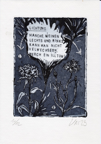 Radierungen auf Zink (Strichätzung, offene Ätzung, Aqua Tinta) Serie von 4 Blatt (ein Blatt außerhalb der Auflage) Plattenformat: 19,5 x 14,5cm Papierformat: 29 x 20cm Auflage: 12 + 2 e.a.